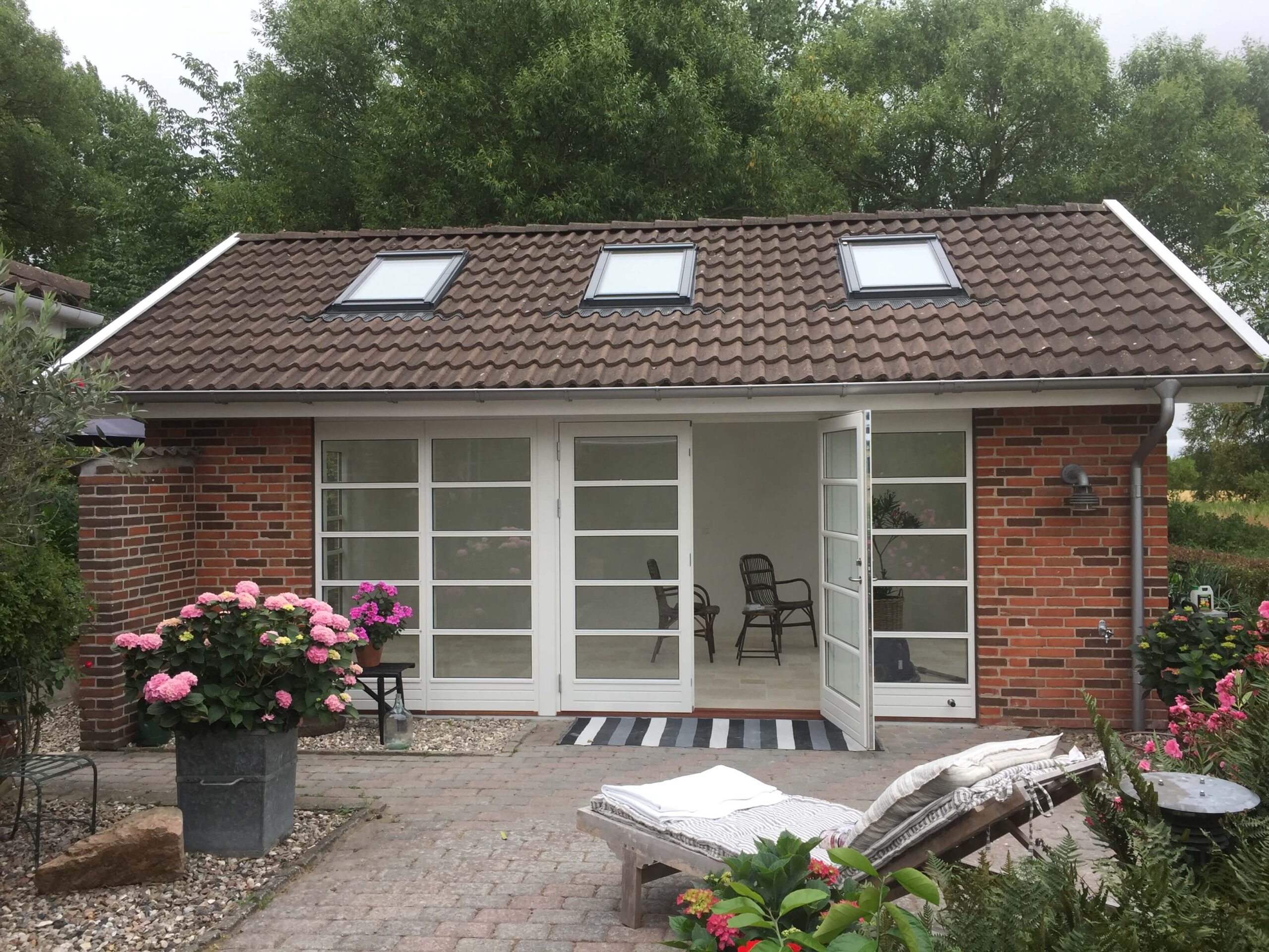 Et af vores projekter inkluderer for eksempel opførelsen af et idyllisk orangeri ved Asnæs. Orangeriet blev anlagt som en lille oase med klinker i changerende beige nuancer og loft til kip samt et smukt lysindfald fra ovenlysvinduer.